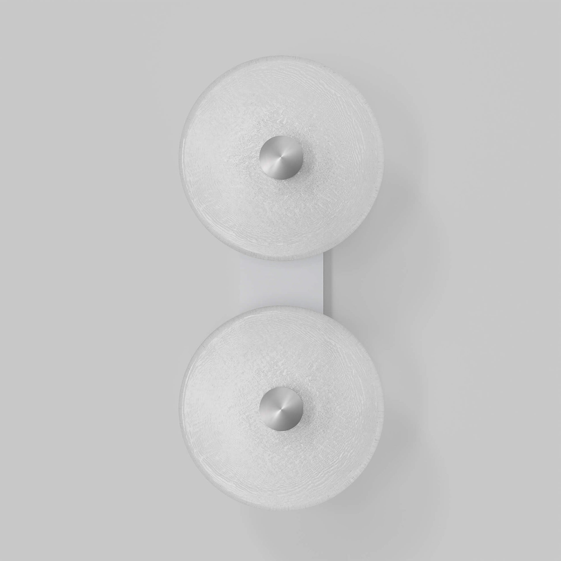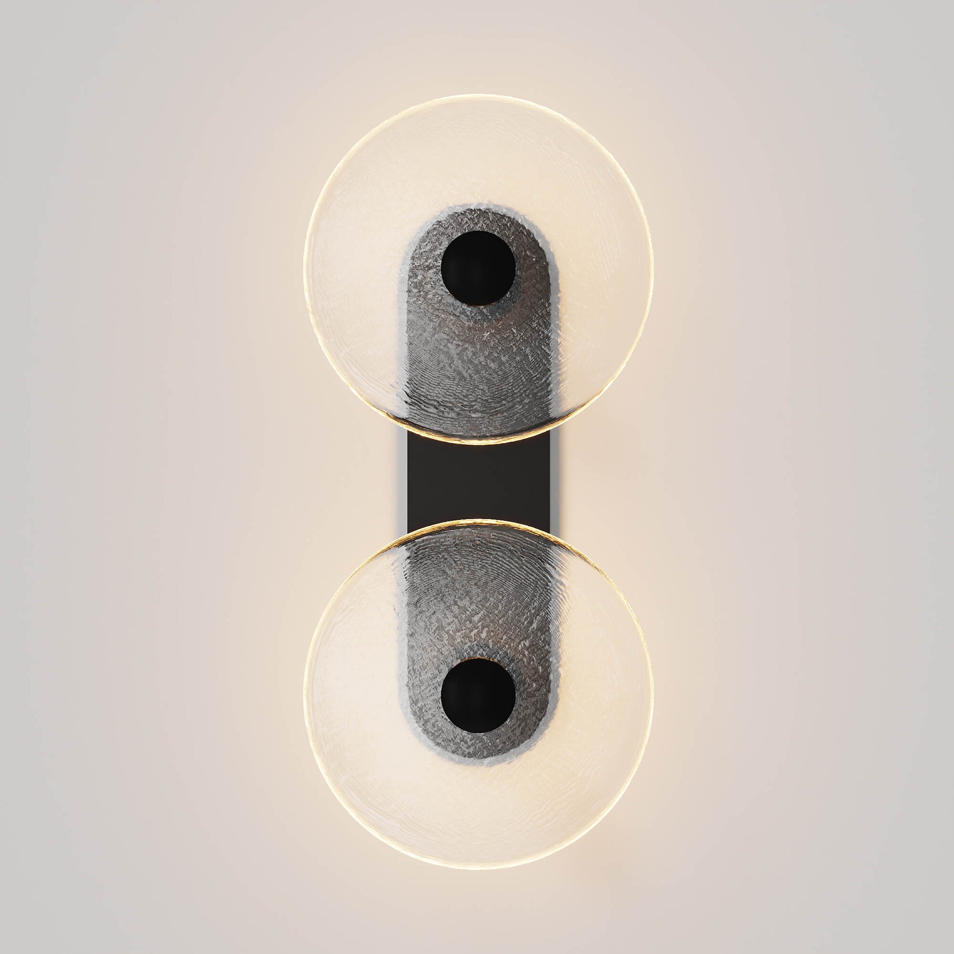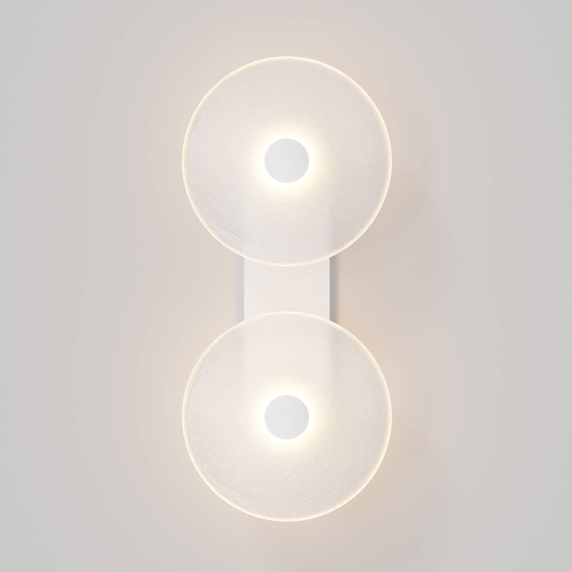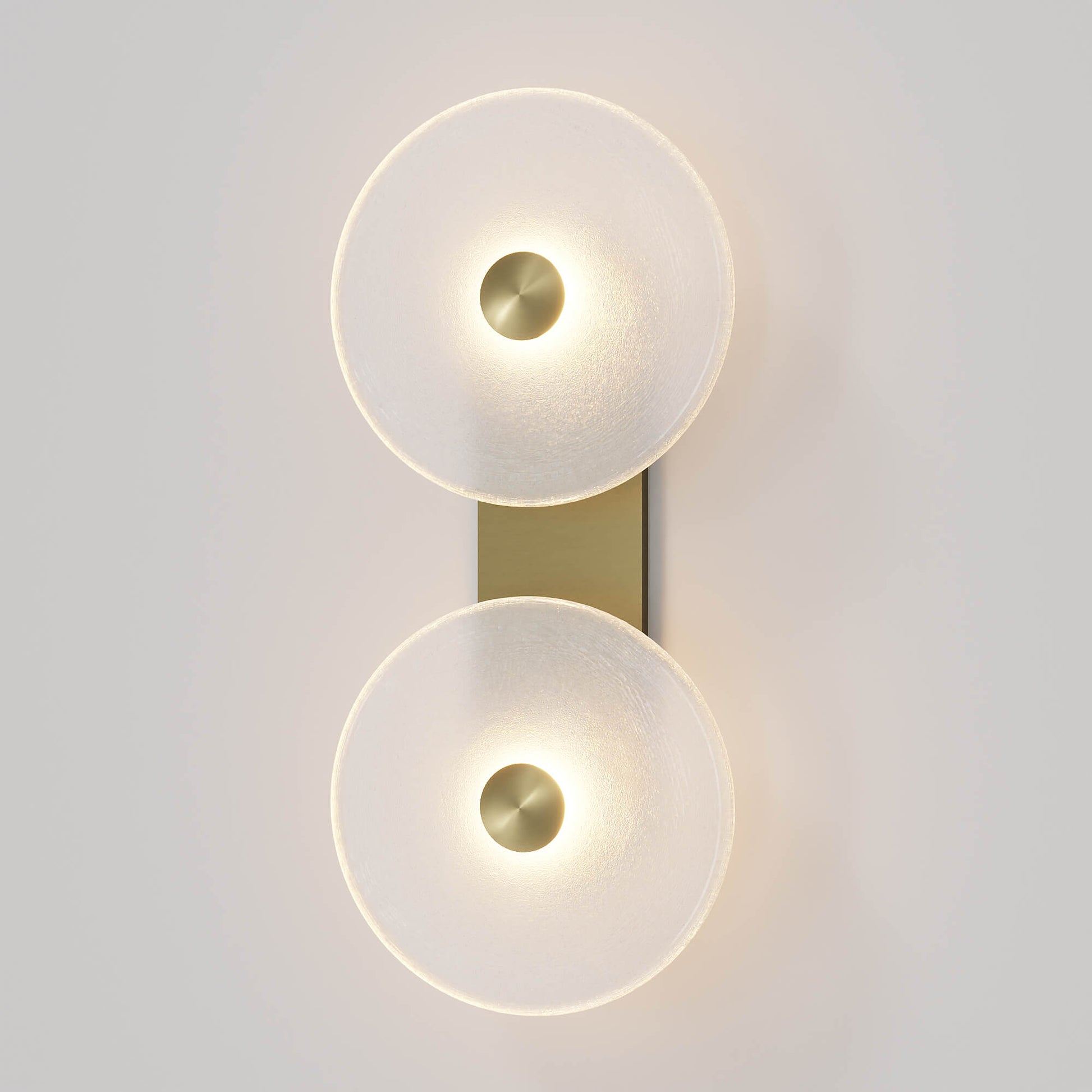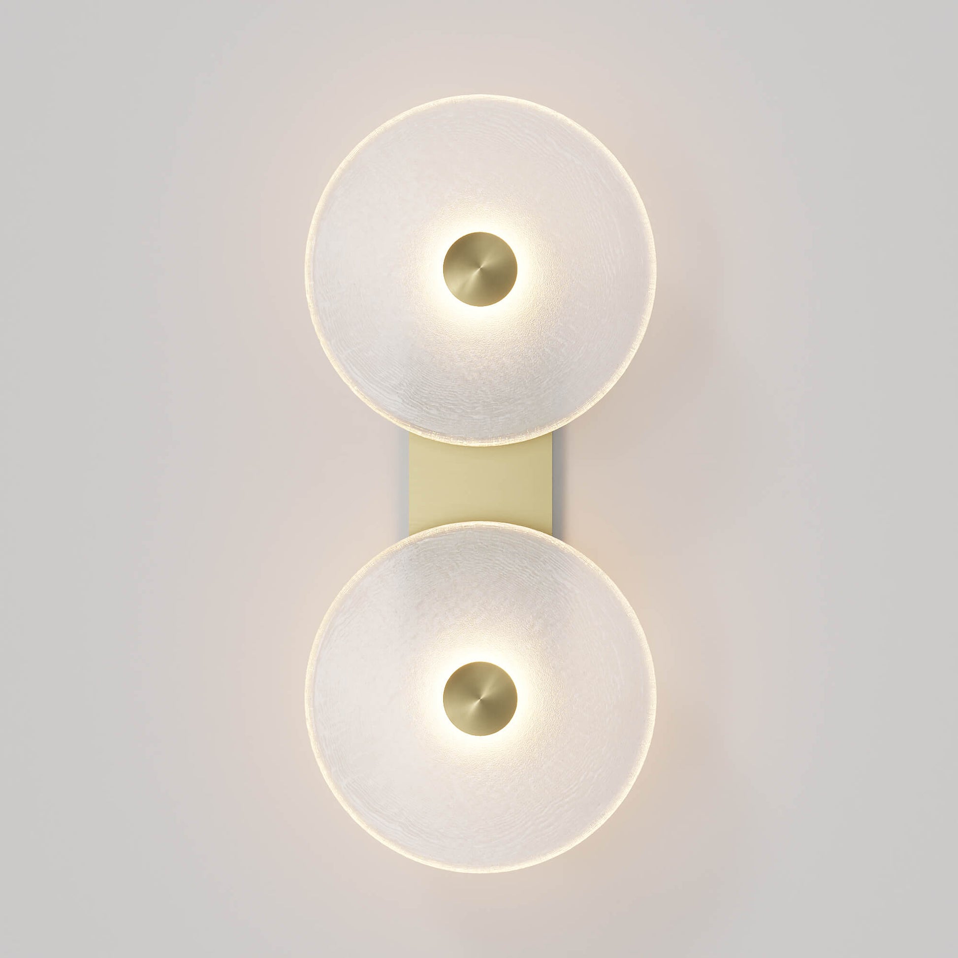Embellish your walls with the Coral Duo wall light and add a modern contemporary feature ideal for kitchens, bedrooms, bathrooms and entryways. This statement piece features two hand-blown glass discs available in both clear and frosted finishes. Tailor it to your preferences by selecting a wall plate finish of brass finish, matte black, matte white, medium bronze or steel finish and set the mood of your space with a choice of warm, warm white, or white LED temperatures. Meticulously hand-blown using premium Swedish clear glass, each disc carries the distinctiveness of SOKTAS Glass designs, promising an unparalleled and personalised lighting masterpiece that adds both elegance and character to your space.