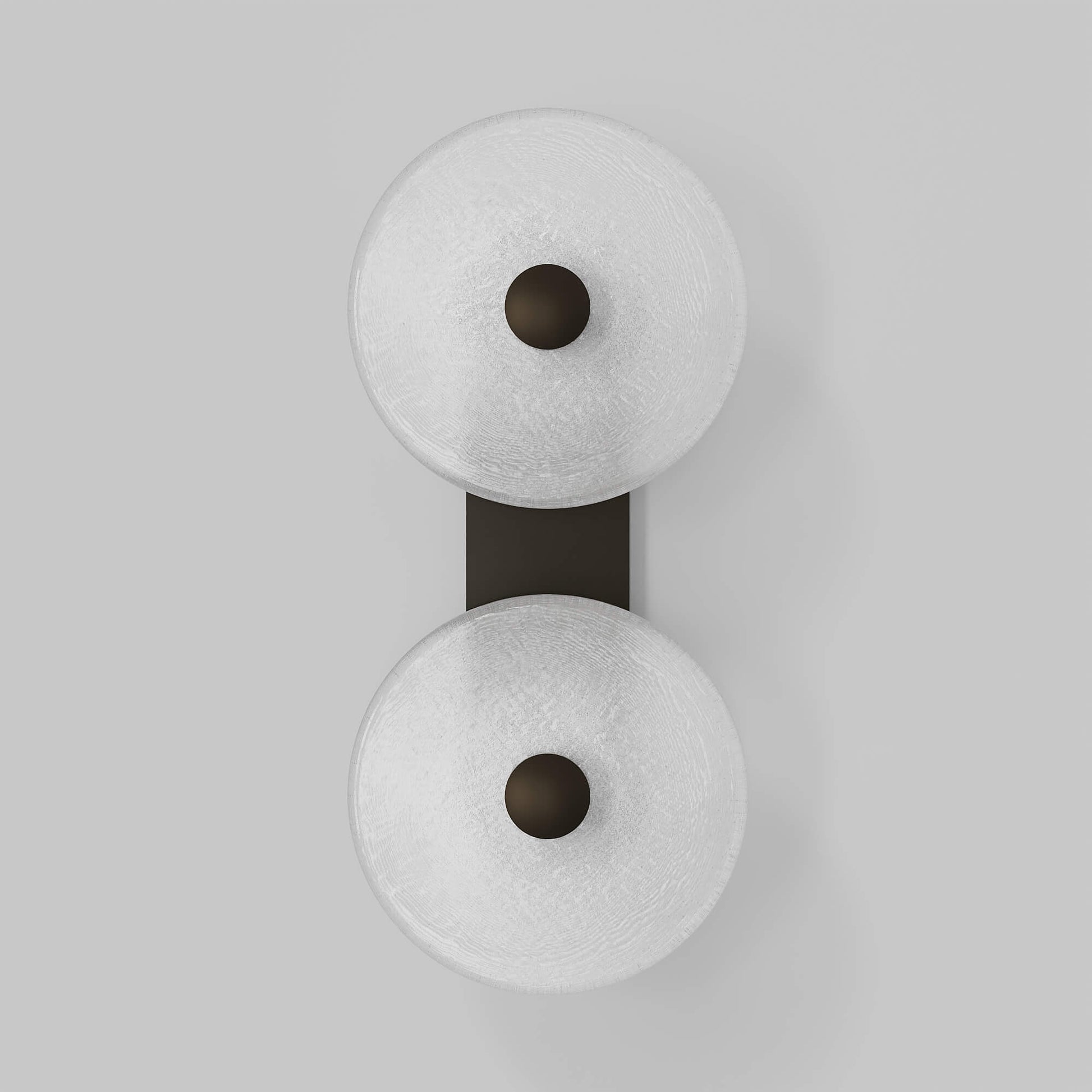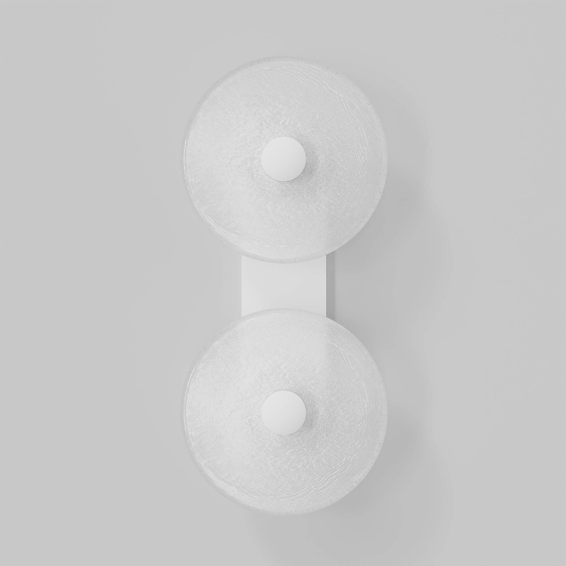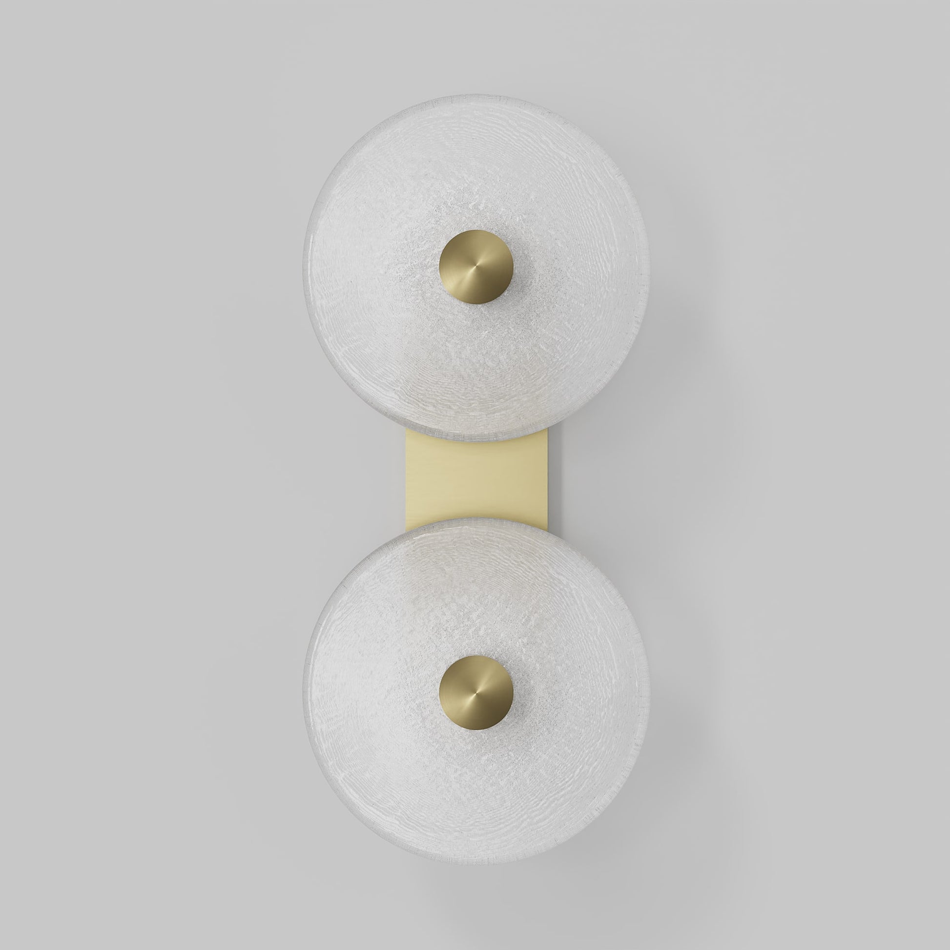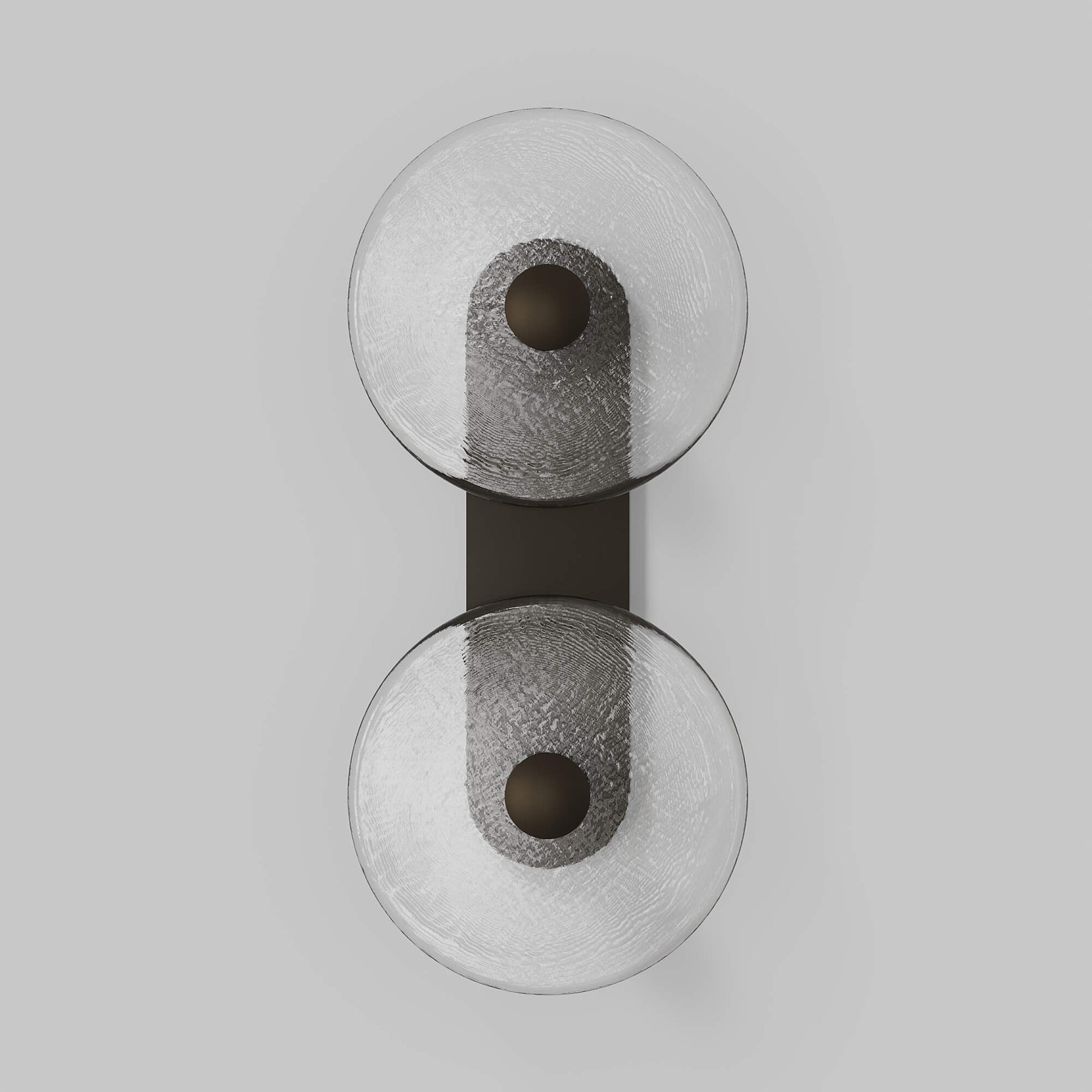 Embellish your walls with the Coral Duo wall light and add a modern contemporary feature ideal for kitchens, bedrooms, bathrooms and entryways. This statement piece features two hand-blown glass discs available in both clear and frosted finishes. Tailor it to your preferences by selecting a wall plate finish of brass finish, matte black, matte white, medium bronze or steel finish and set the mood of your space with a choice of warm, warm white, or white LED temperatures. Meticulously hand-blown using premium Swedish clear glass, each disc carries the distinctiveness of SOKTAS Glass designs, promising an unparalleled and personalised lighting masterpiece that adds both elegance and character to your space.