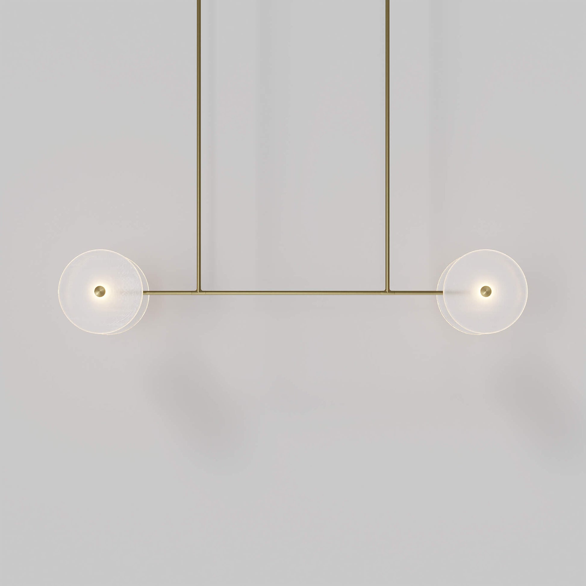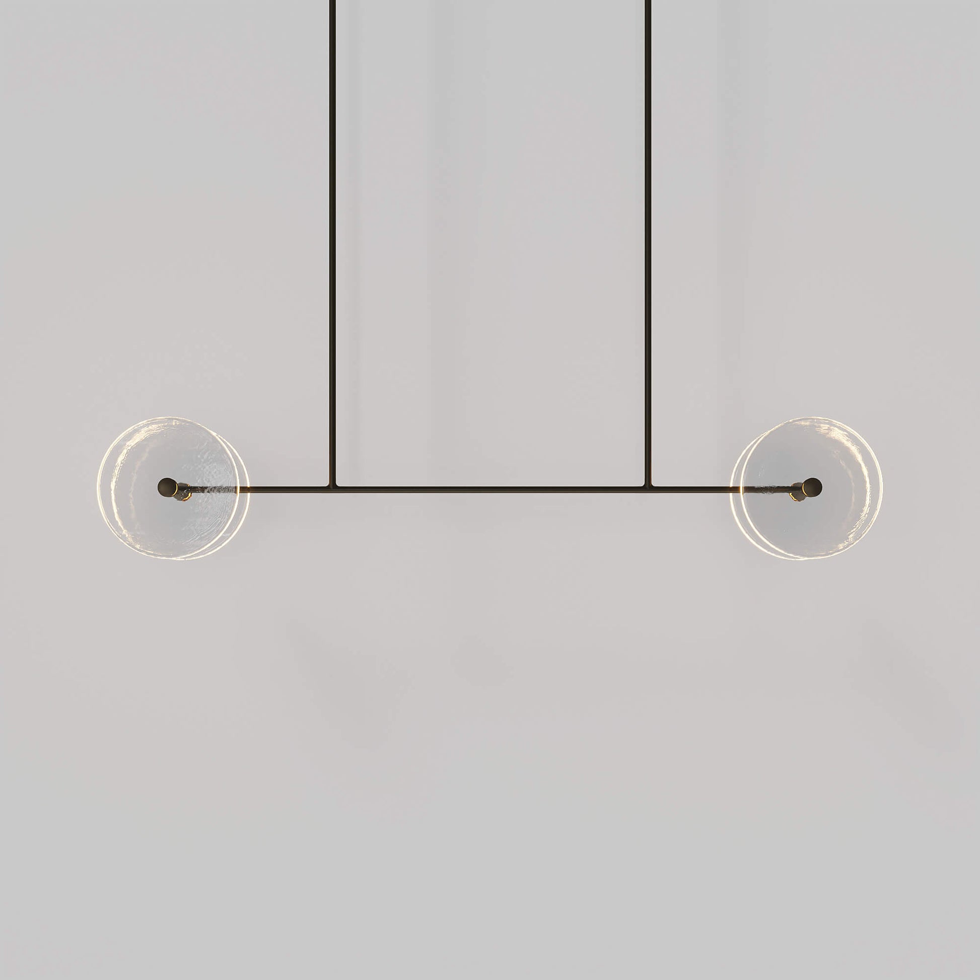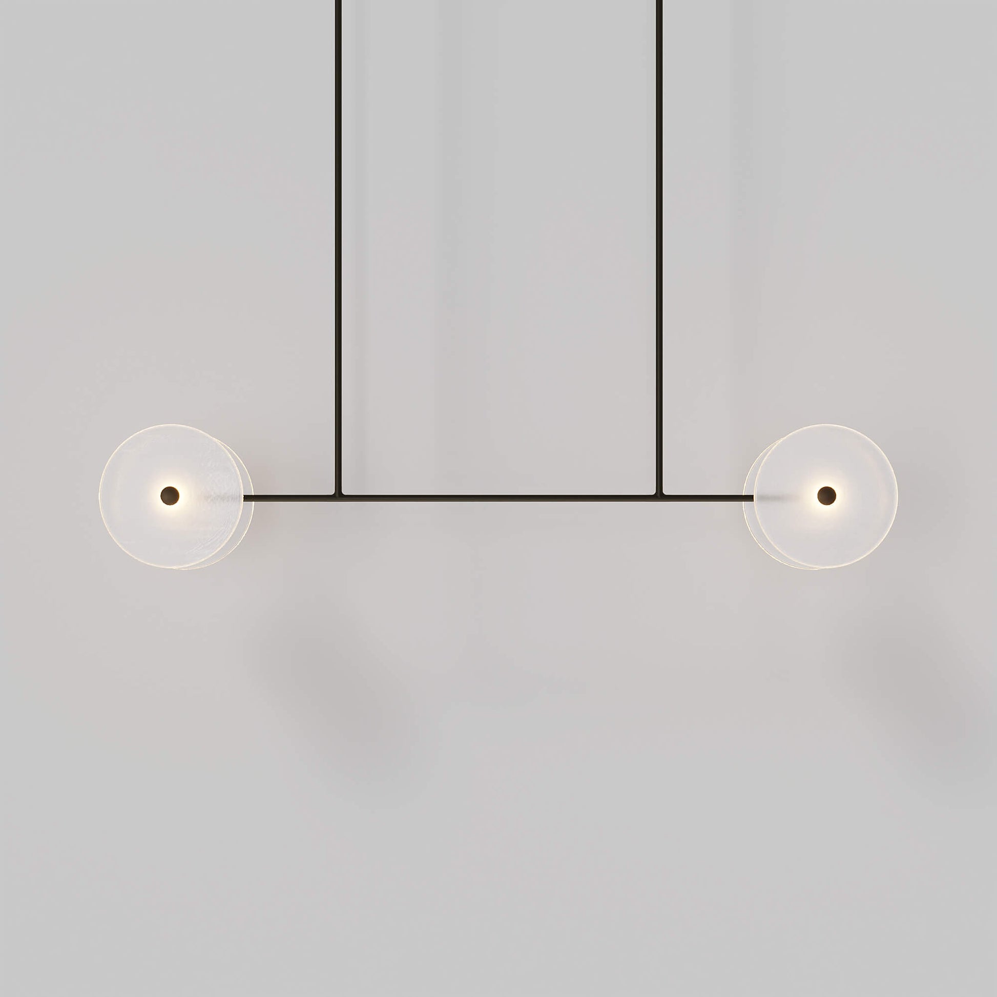 Elevate your space with the Coral Linear Rod pendant light, a captivating modern centrepiece perfect for dining spaces and over kitchen islands. Four exquisite glass-blown discs are suspended from a beautiful crafted rod structure, available in a selection of finishes including brass finish, steel finish, matte black, matte white, or medium bronze powder coating. Choose from a frosted or clear finish and set the mood of your space with a choice of warm, warm white, or white LED temperatures. Meticulously hand-blown using premium Swedish clear glass, each disc carries the distinctiveness of SOKTAS Glass designs, promising an unparalleled and personalised lighting masterpiece that adds both elegance and character to your space.