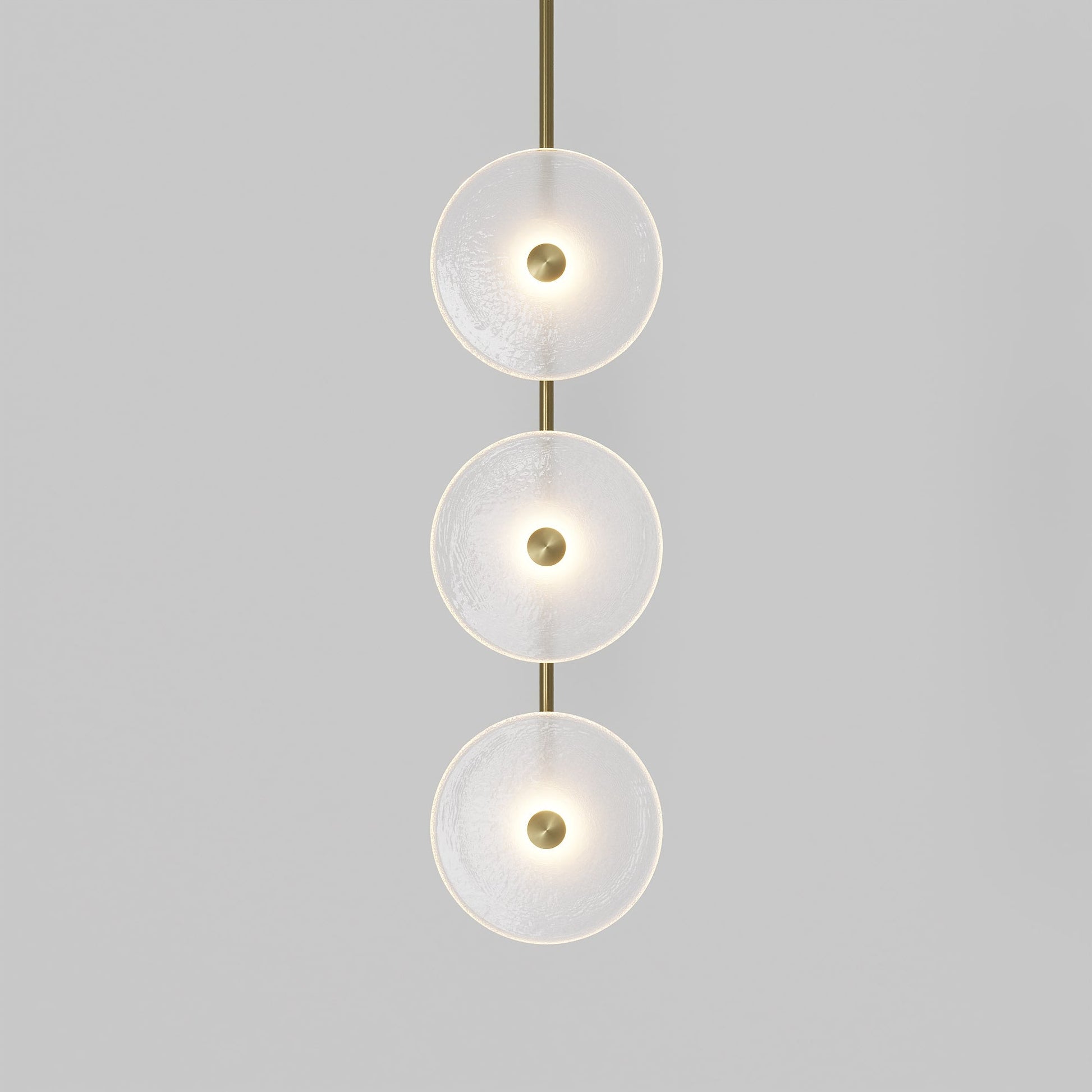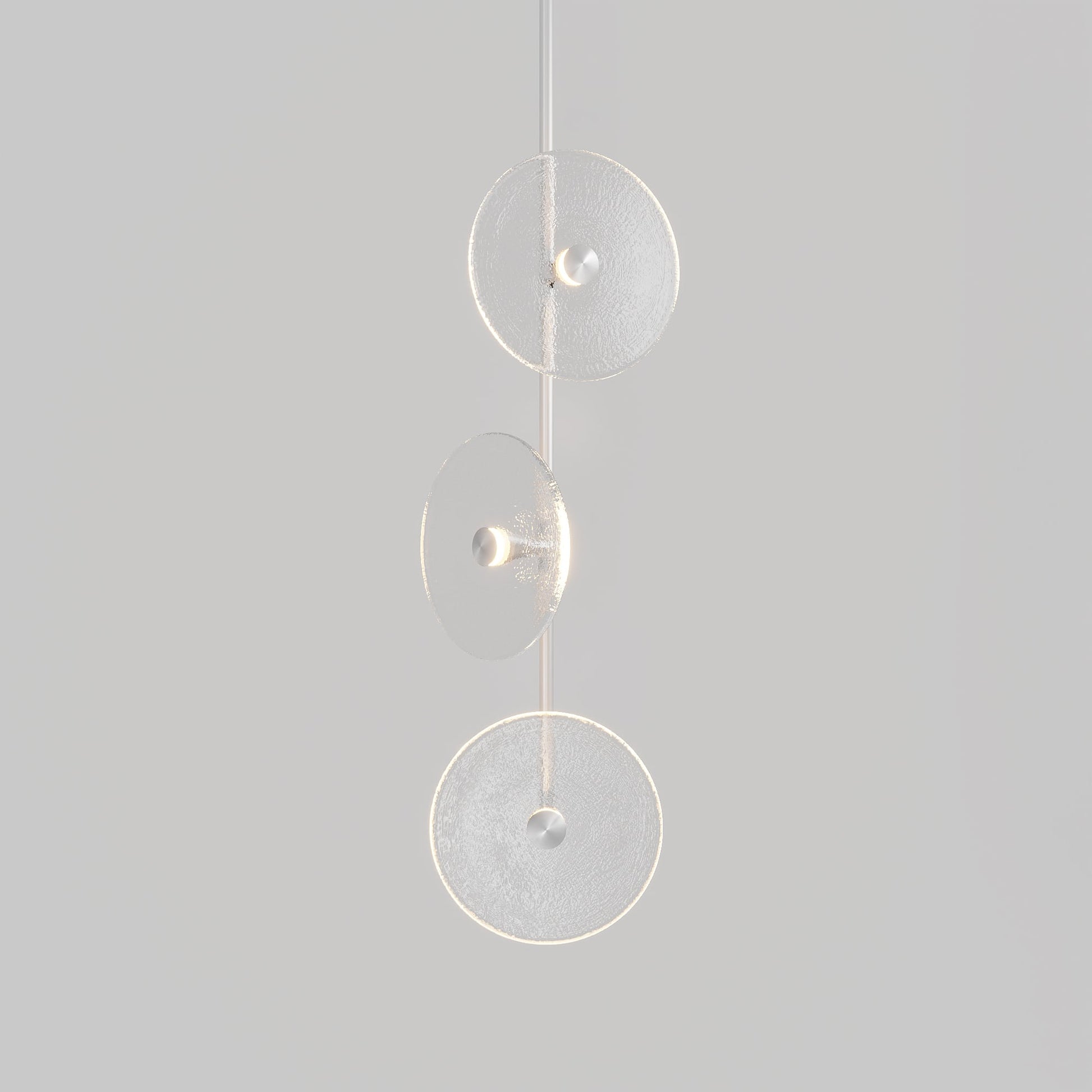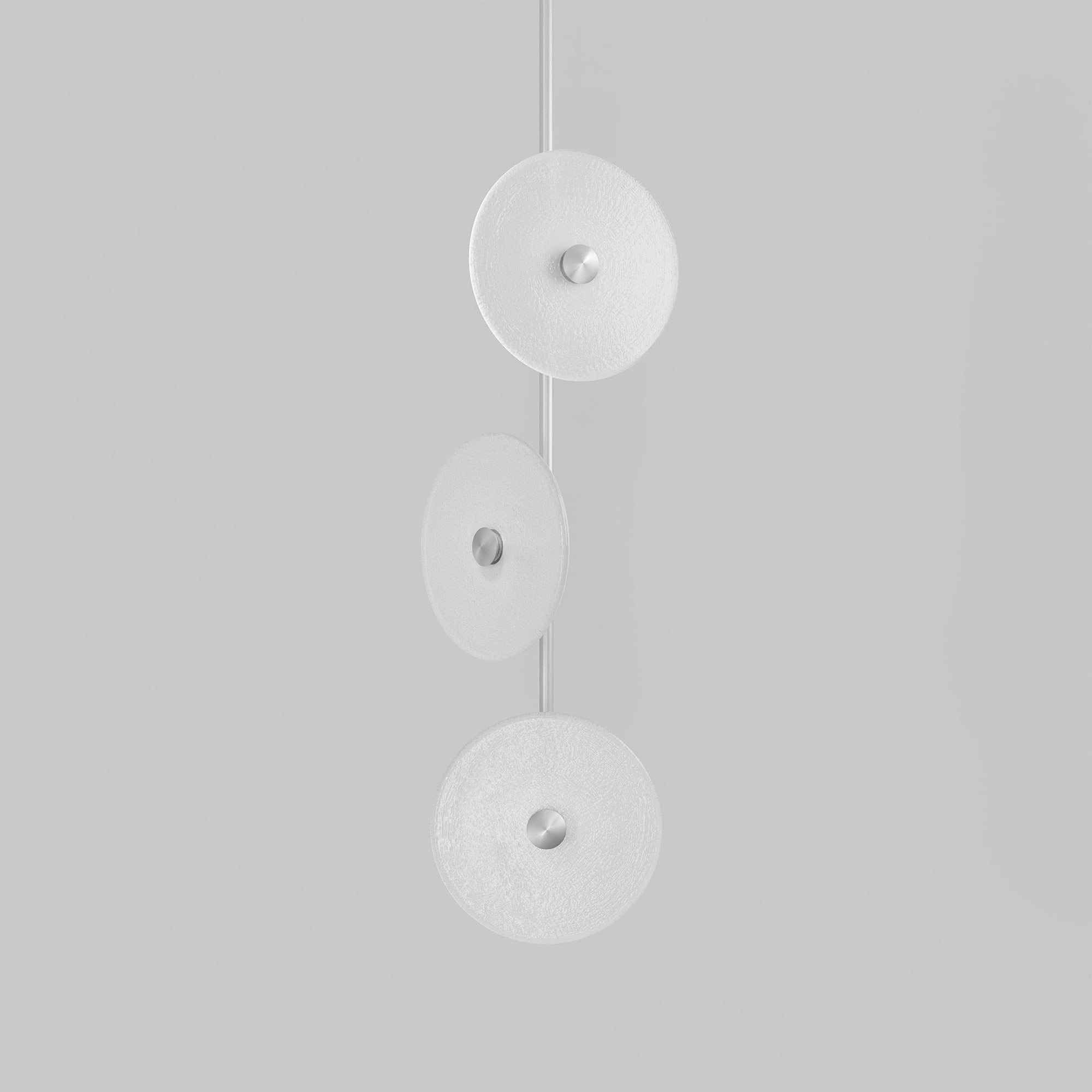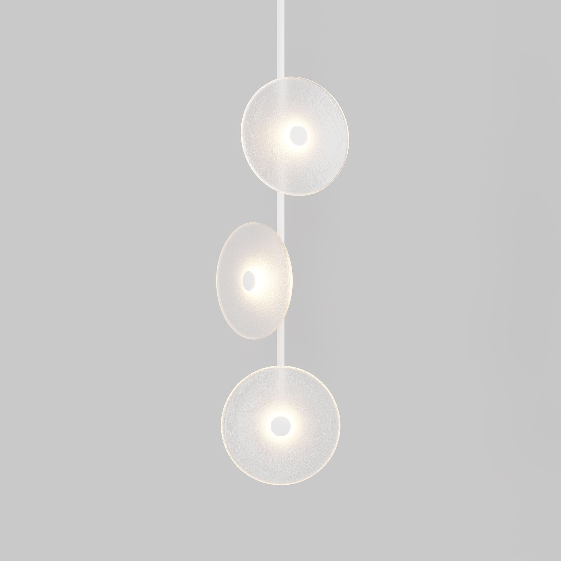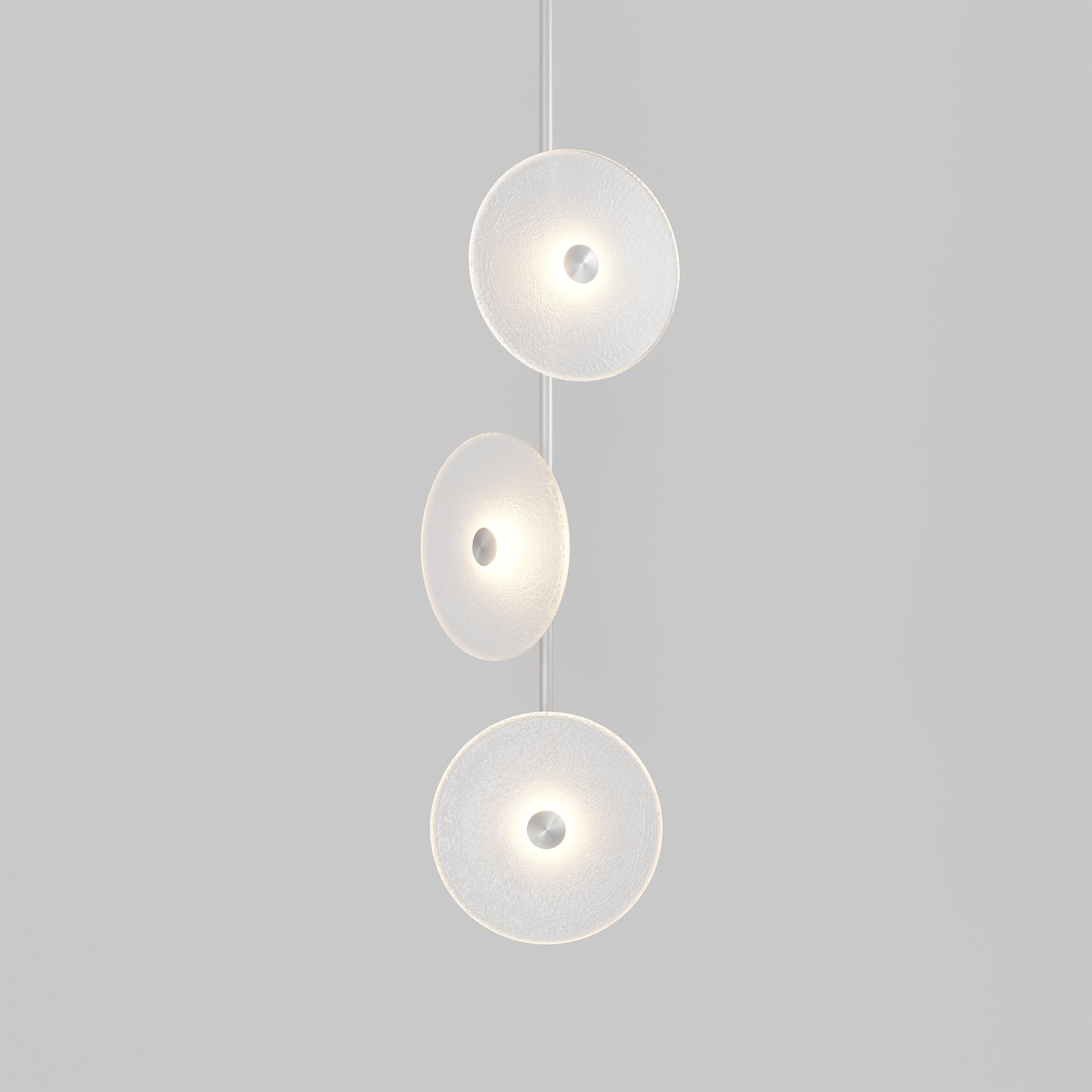Elevate your space with the Coral Trio pendant light, a captivating modern centrepiece perfect for entryways, bathrooms, and kitchen islands. Three exquisite glass-blown discs are elegantly suspended from a rod, available in a selection of finishes including brass finish, steel finish, matte black, matte white, or medium bronze powder coating. Available in a centred or off-centred installation, opt for frosted or clear glass to match your style and set the mood with a choice of warm, warm white, or white LED temperatures. Meticulously hand-blown using premium Swedish clear glass, each disc carries the distinctiveness of SOKTAS Glass designs, promising an unparalleled and personalised lighting masterpiece that adds both elegance and character to your space.
