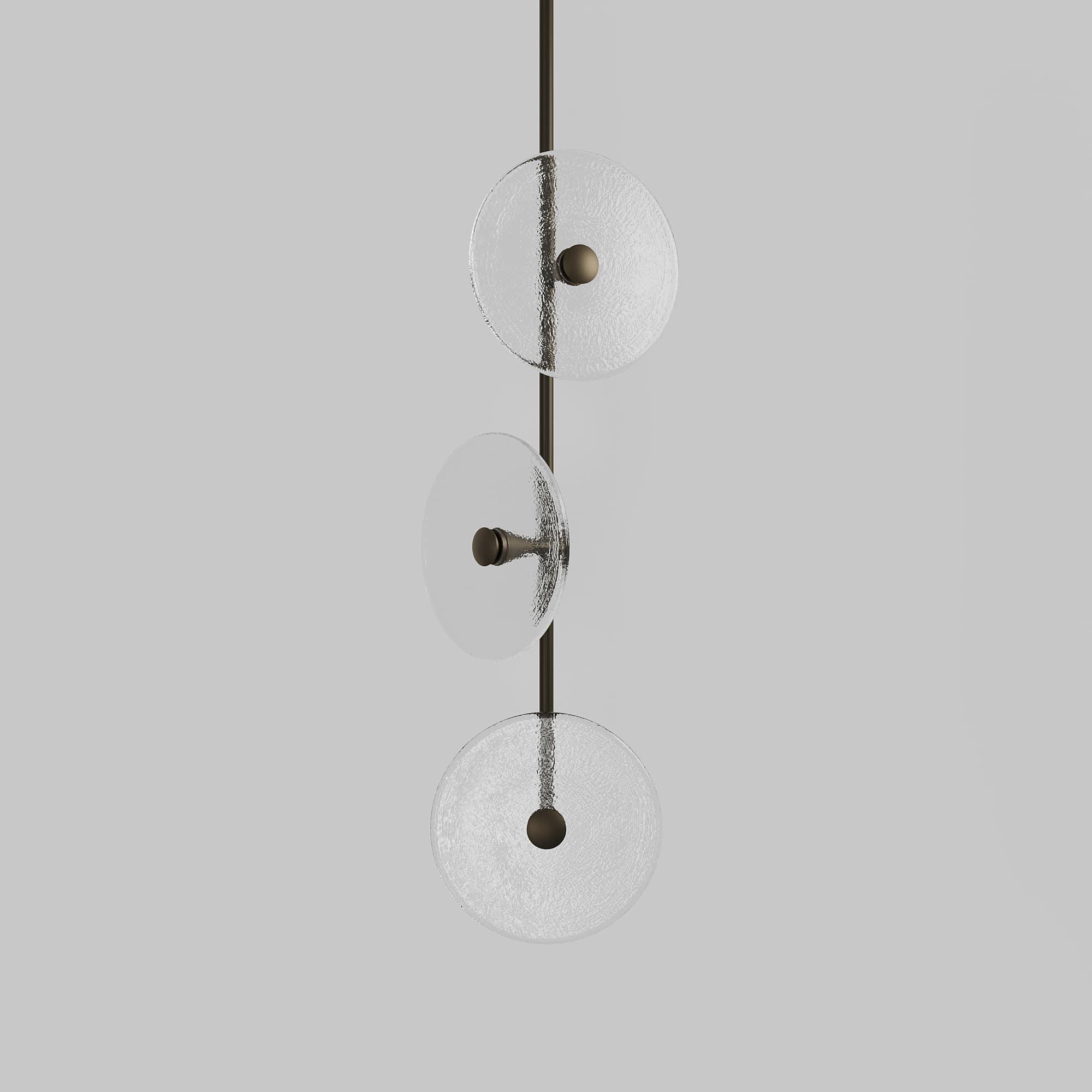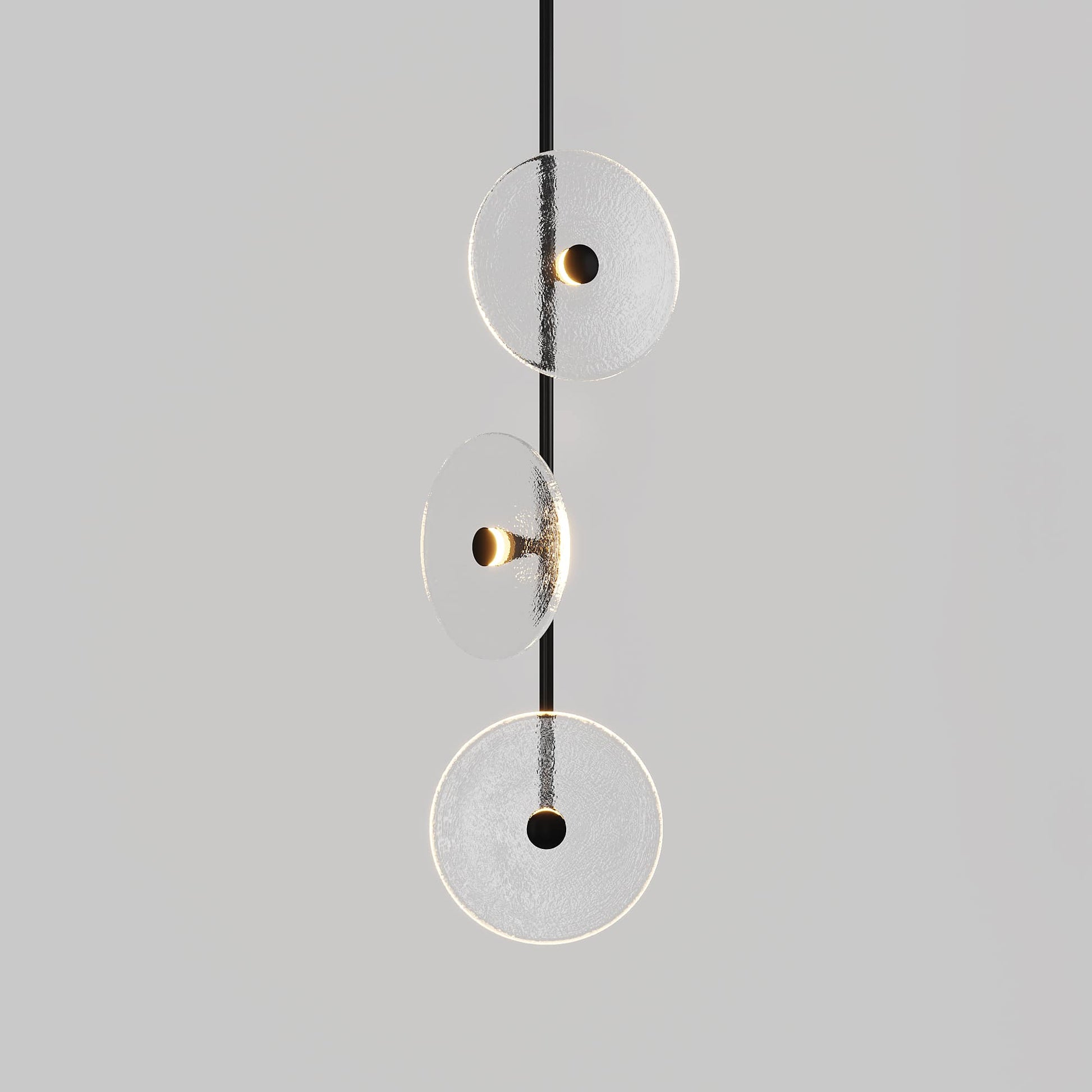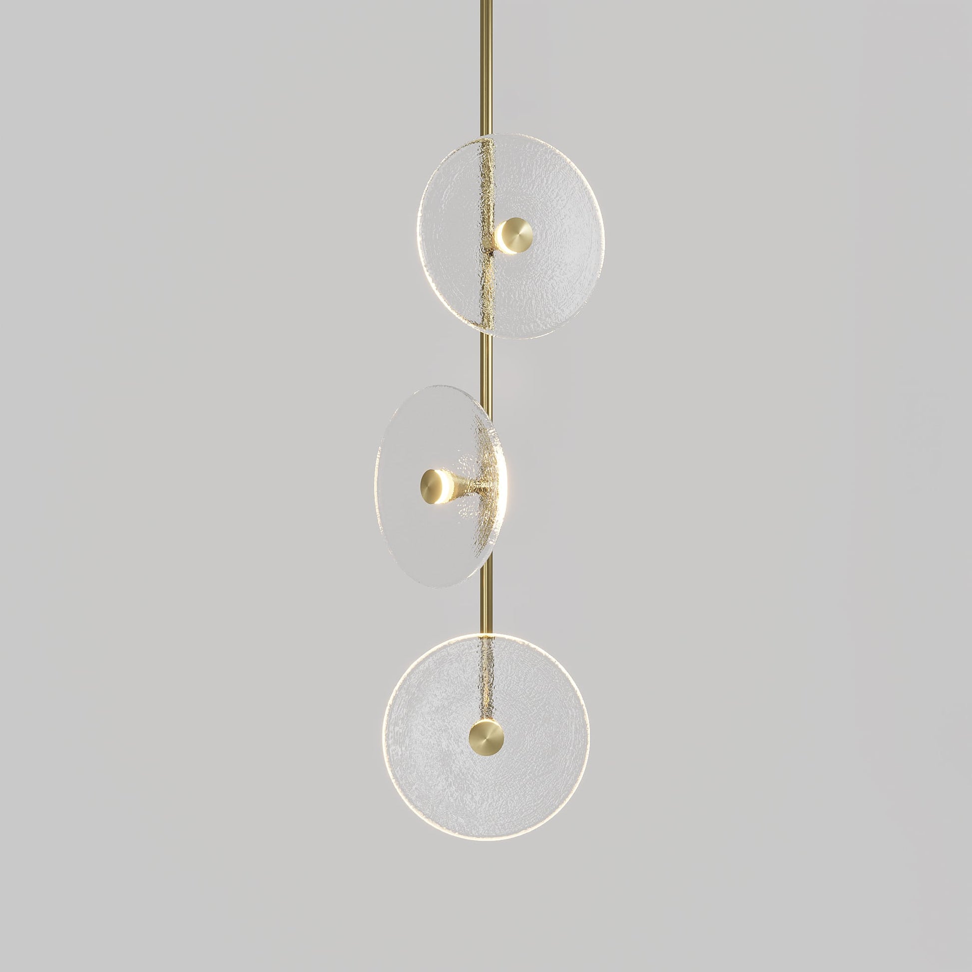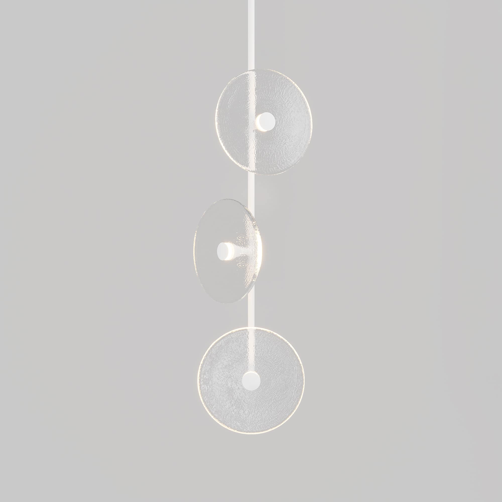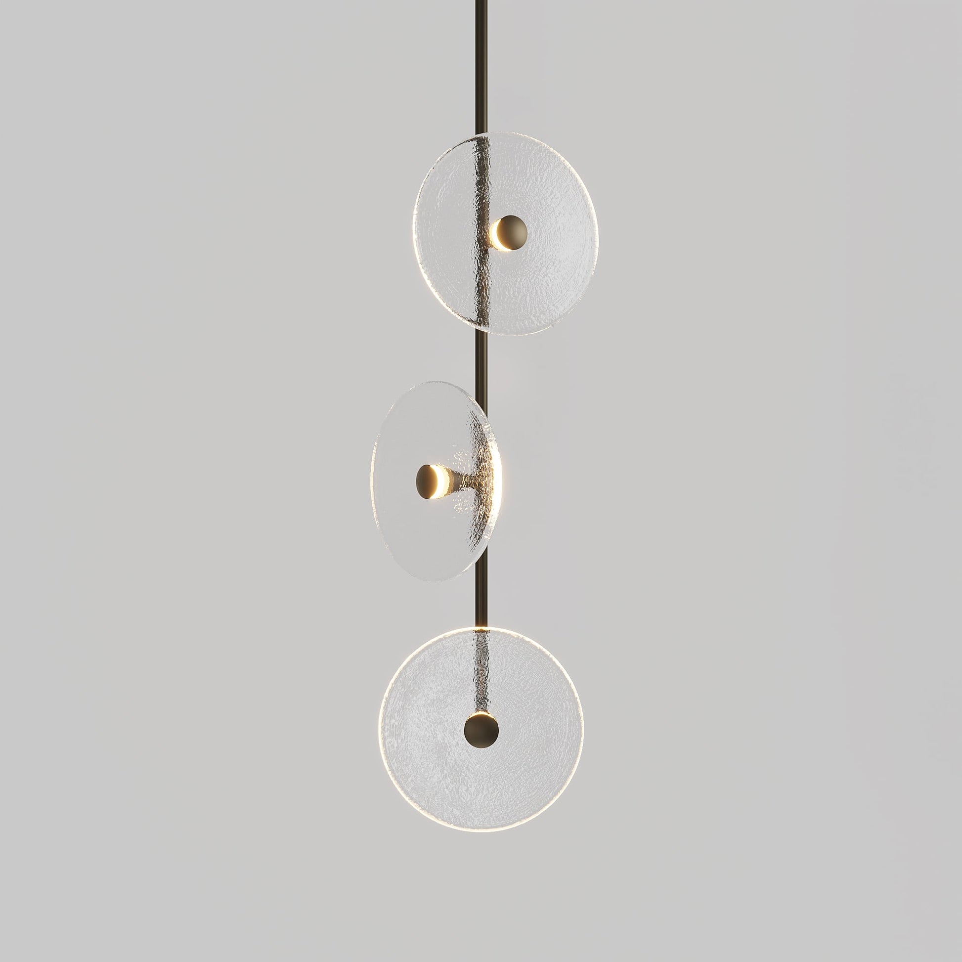 Elevate your space with the Coral Trio pendant light, a captivating modern centrepiece perfect for entryways, bathrooms, and kitchen islands. Three exquisite glass-blown discs are elegantly suspended from a rod, available in a selection of finishes including brass finish, steel finish, matte black, matte white, or medium bronze powder coating. Available in a centred or off-centred installation, opt for frosted or clear glass to match your style and set the mood with a choice of warm, warm white, or white LED temperatures. Meticulously hand-blown using premium Swedish clear glass, each disc carries the distinctiveness of SOKTAS Glass designs, promising an unparalleled and personalised lighting masterpiece that adds both elegance and character to your space.
