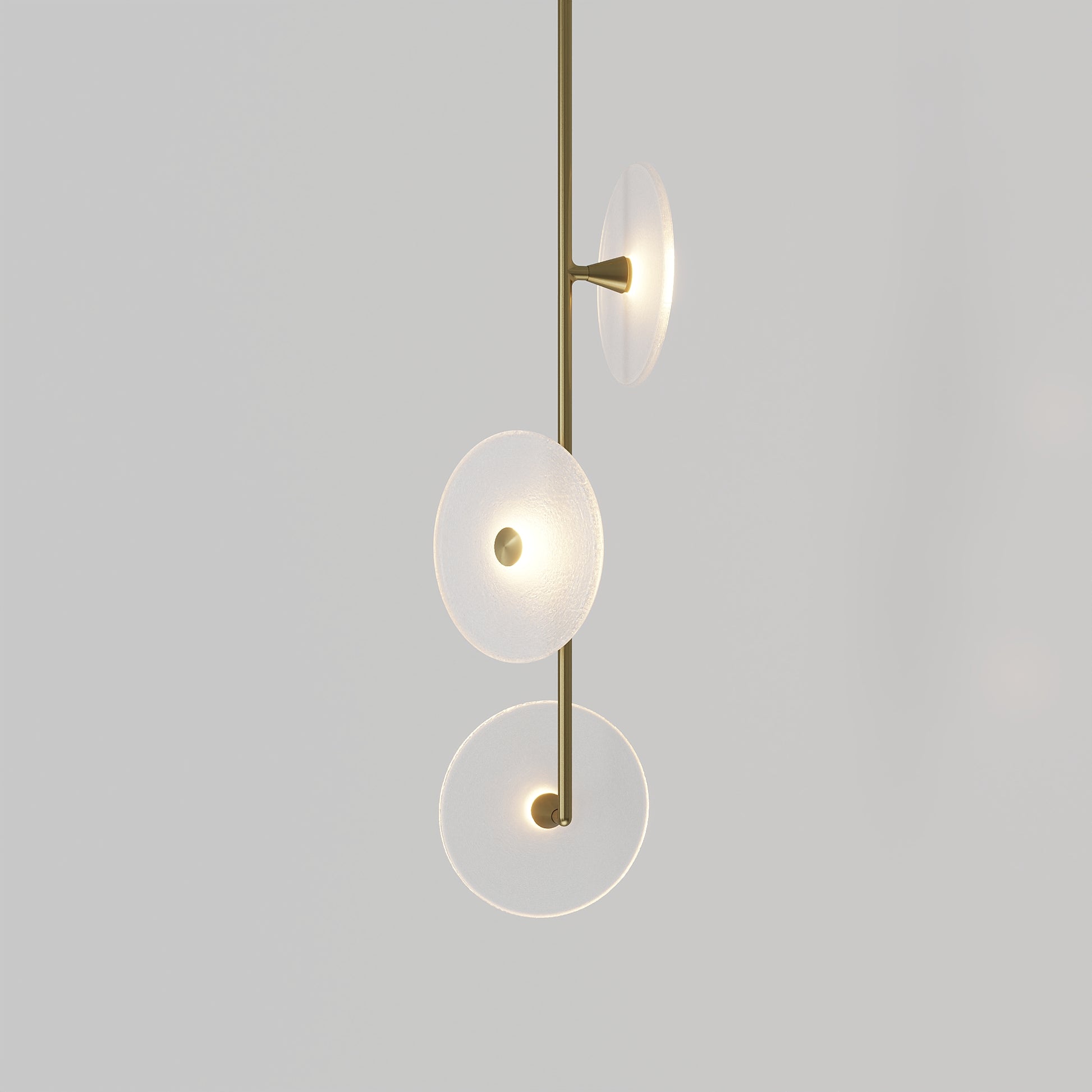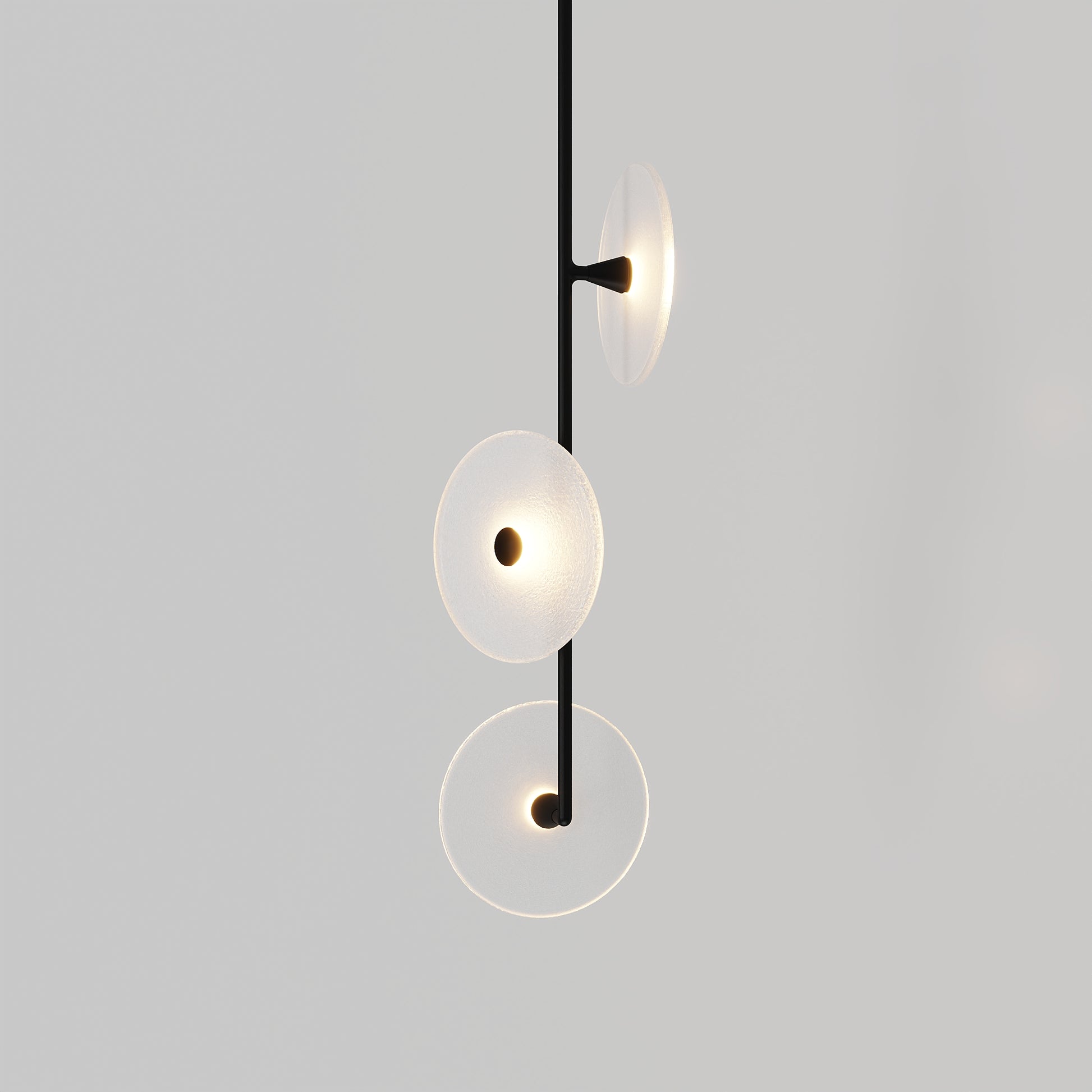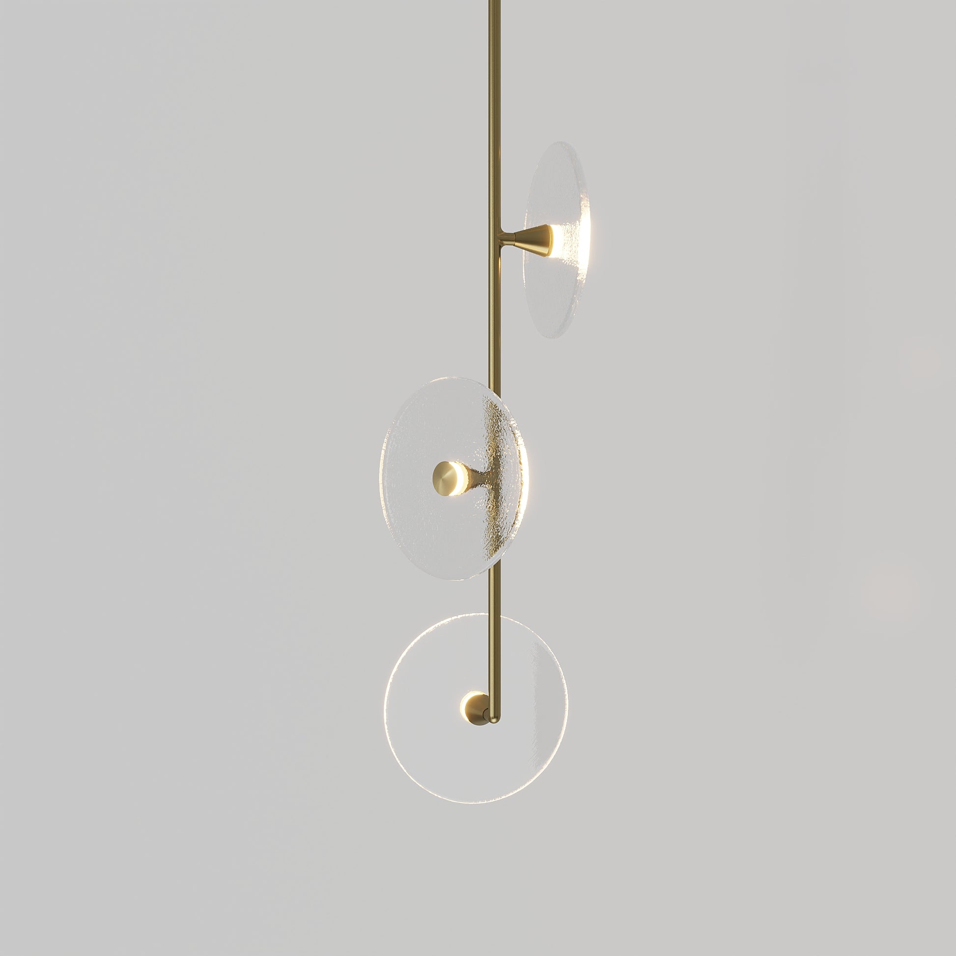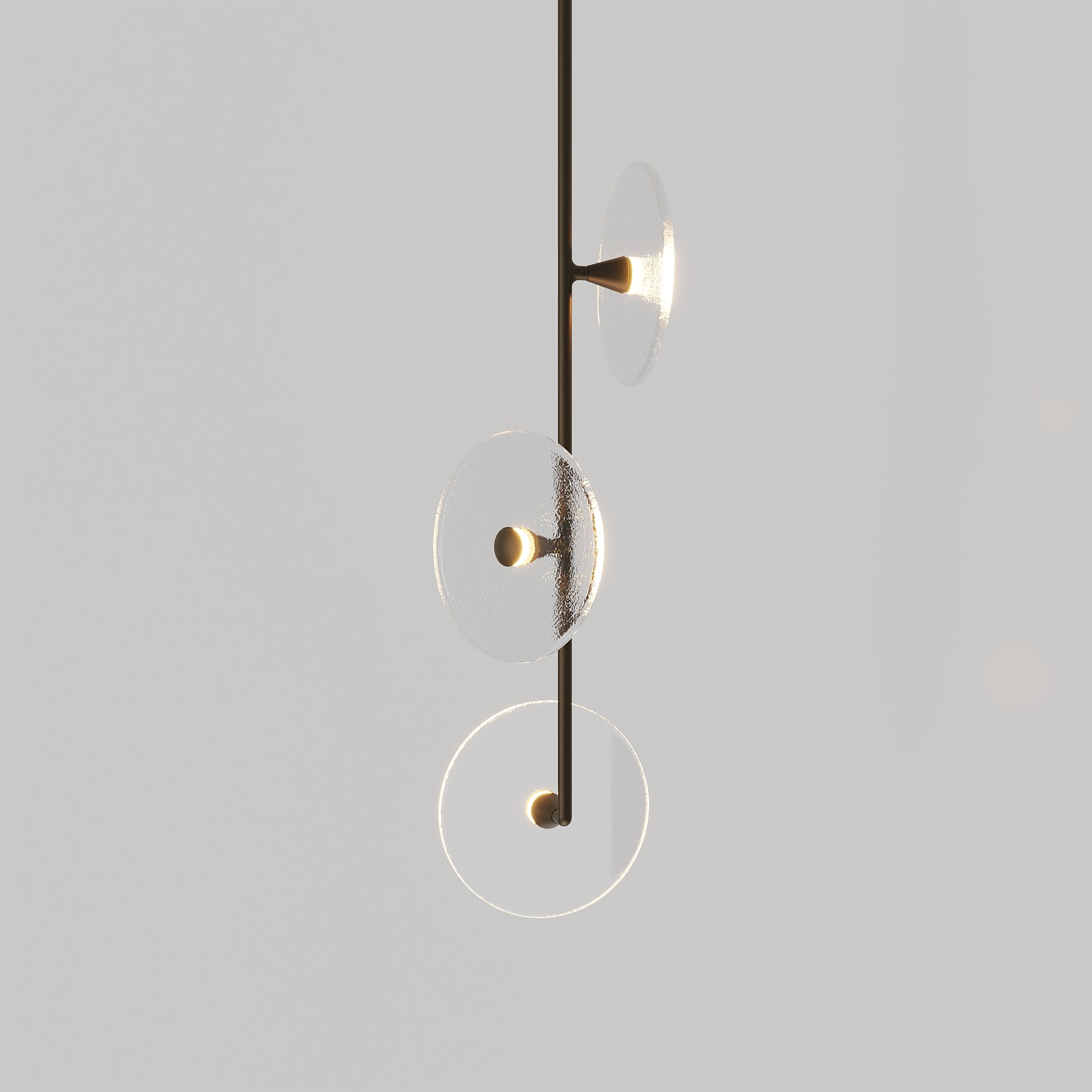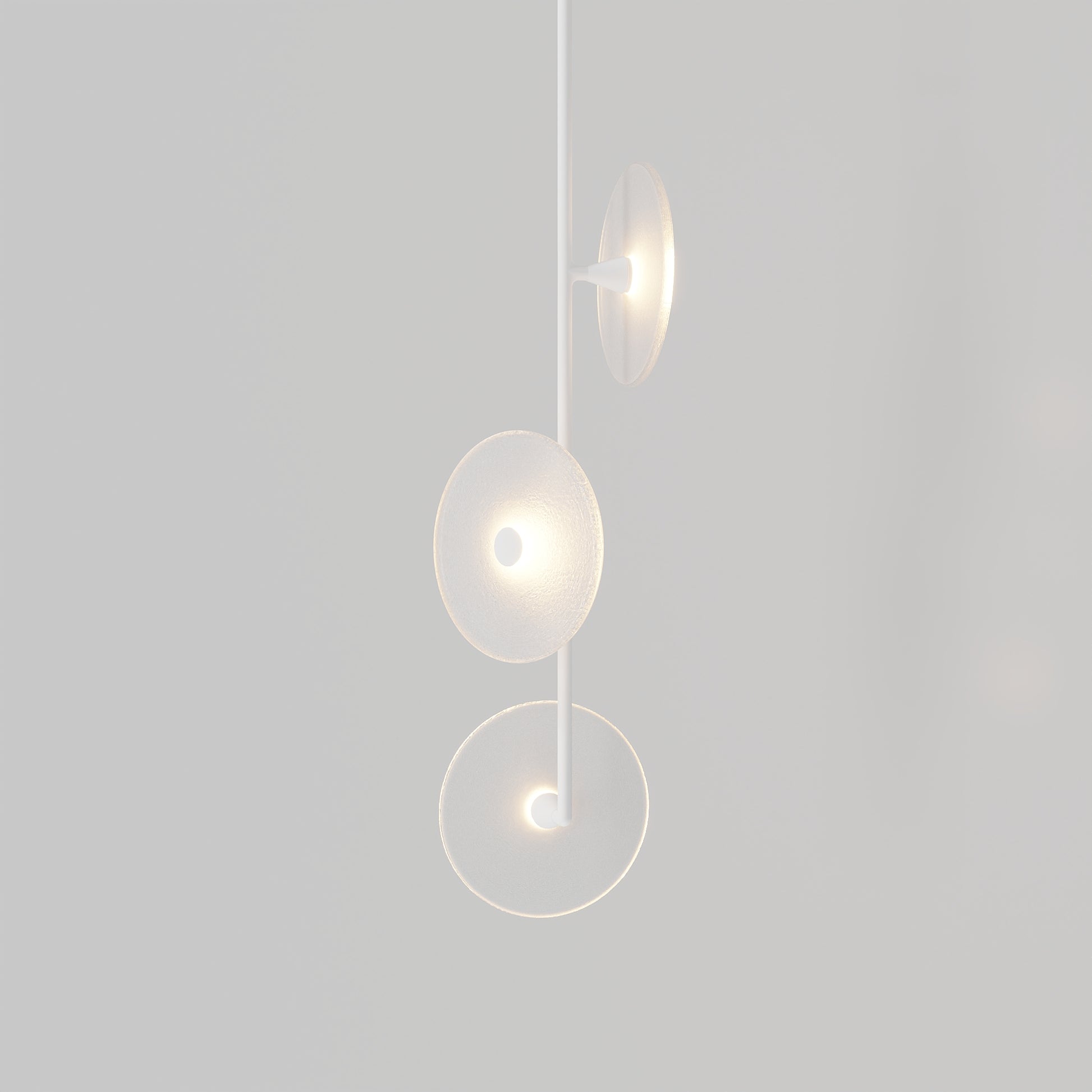 Elevate your space with the Coral Trio pendant light, a captivating modern centrepiece perfect for entryways, bathrooms, and kitchen islands. Three exquisite glass-blown discs are elegantly suspended from a rod, available in a selection of finishes including brass finish, steel finish, matte black, matte white, or medium bronze powder coating. Available in a centred or off-centred installation, opt for frosted or clear glass to match your style and set the mood with a choice of warm, warm white, or white LED temperatures. Meticulously hand-blown using premium Swedish clear glass, each disc carries the distinctiveness of SOKTAS Glass designs, promising an unparalleled and personalised lighting masterpiece that adds both elegance and character to your space.