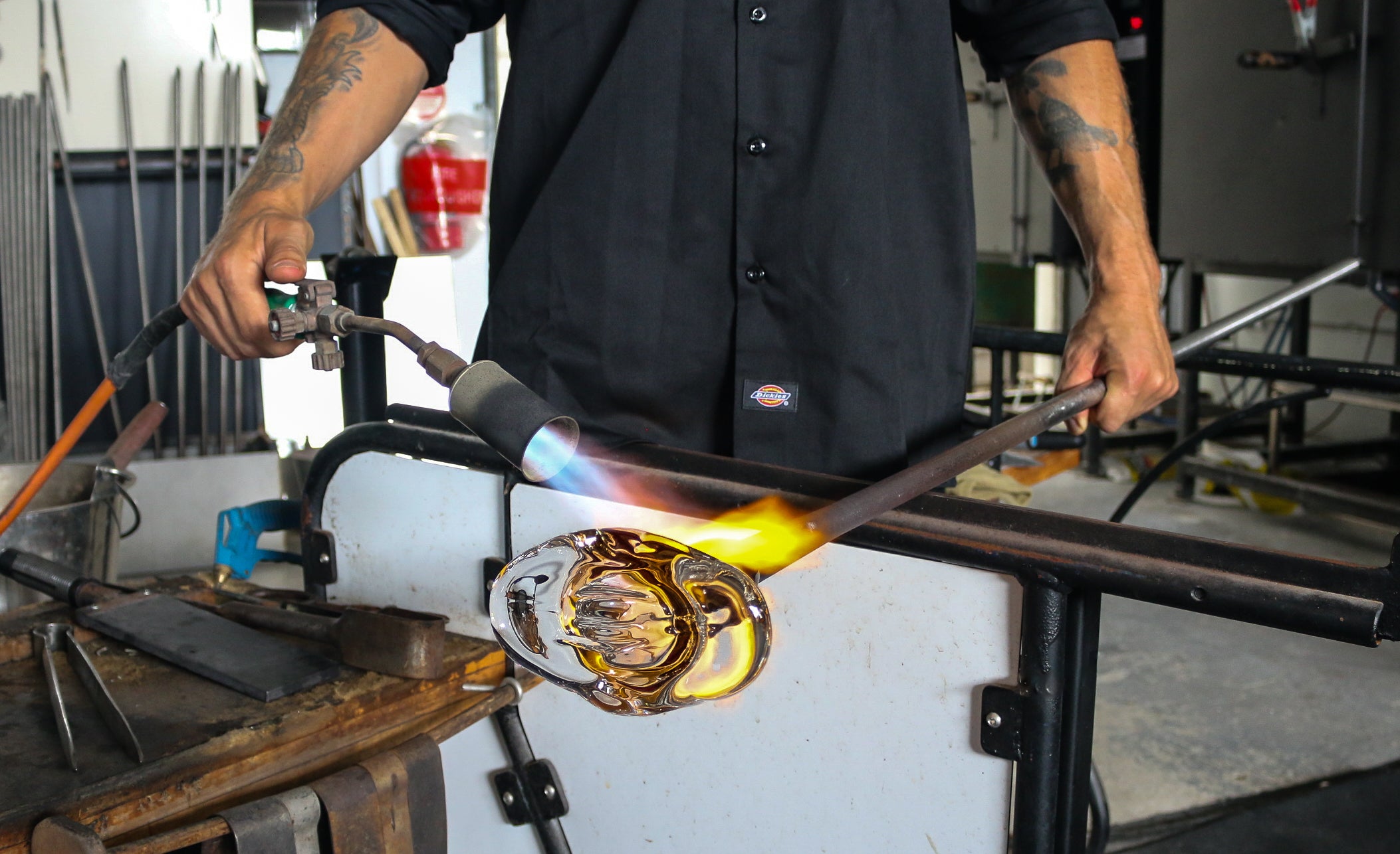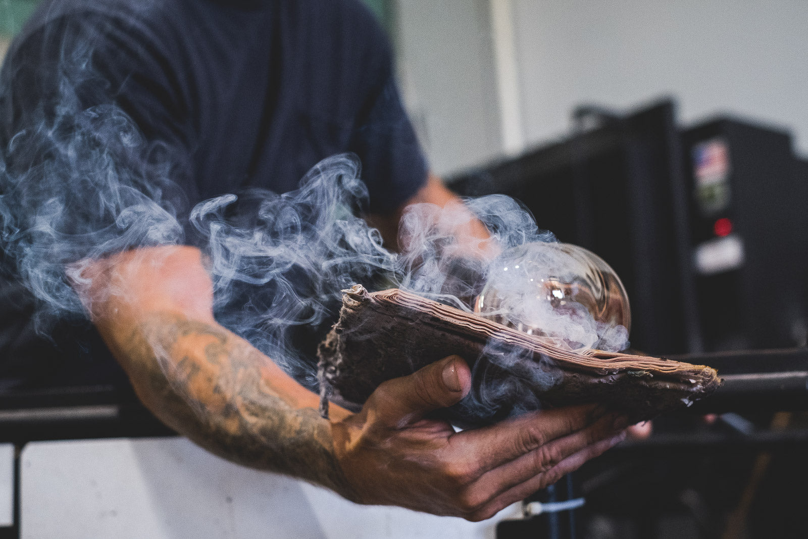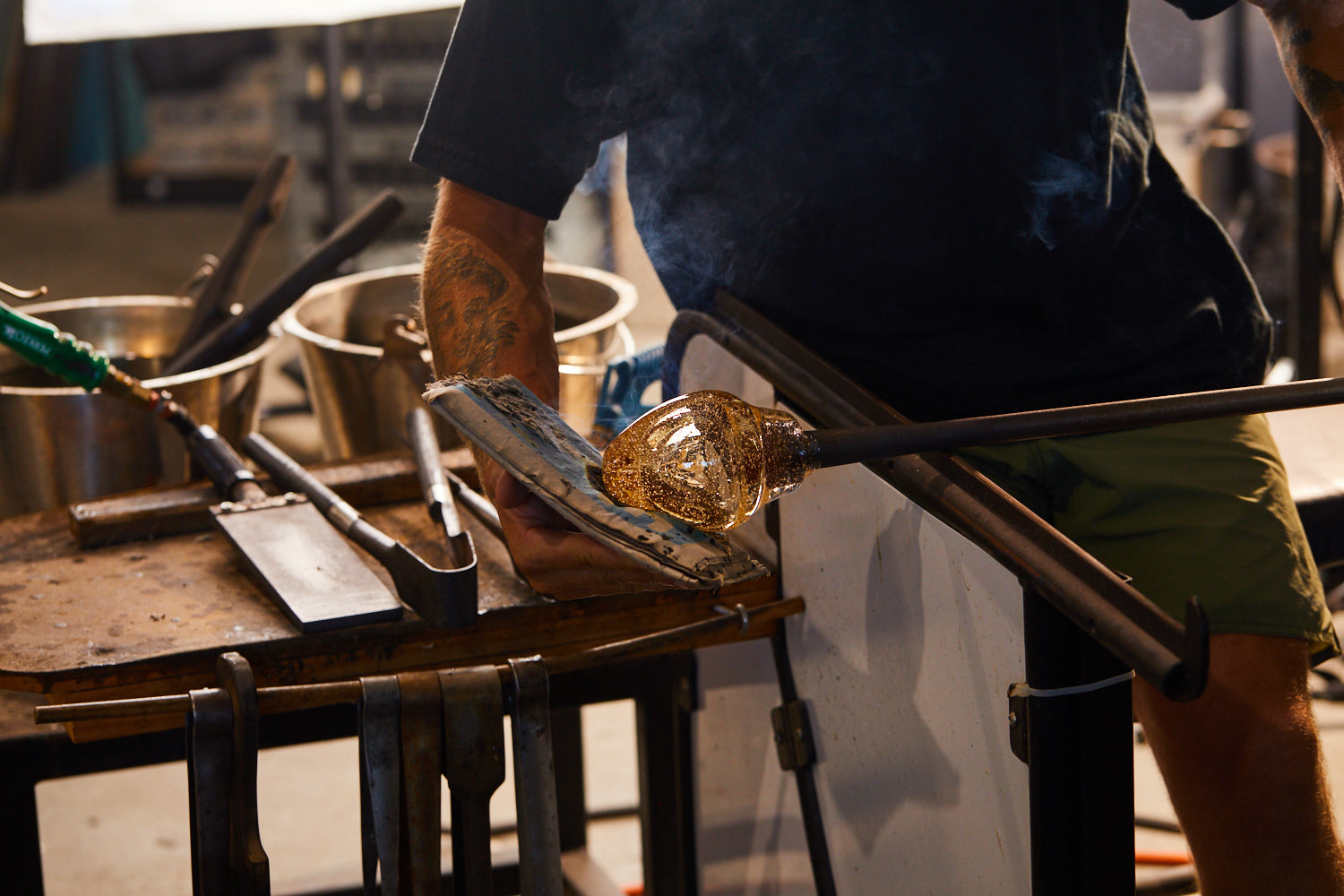 The skills and techniques learned by Oliver since 2001 have allowed him to develop his craft and create his own signature style. The process of hand-blowing glass is rigorous and intense, as the molten hot glass is shaped and blown by hand at around 1000° C by Oliver himself.